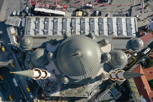 [Fotoğraf: AA]Ana kapısı üzerinde yer alan kitabesi asılan ve çerçeve taşları döşenen caminin içine ise çalışmalar için iskele kuruldu.
