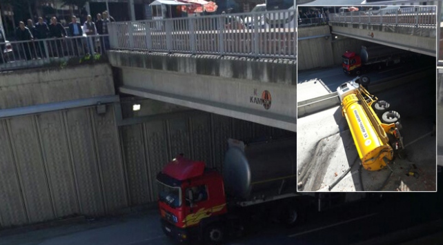 Bir süre sonra hareket etmeye başlayan tanker, yaklaşık 10 metre yükseklikten D-100 Karayolu İstanbul istikametinde yola devrildi.