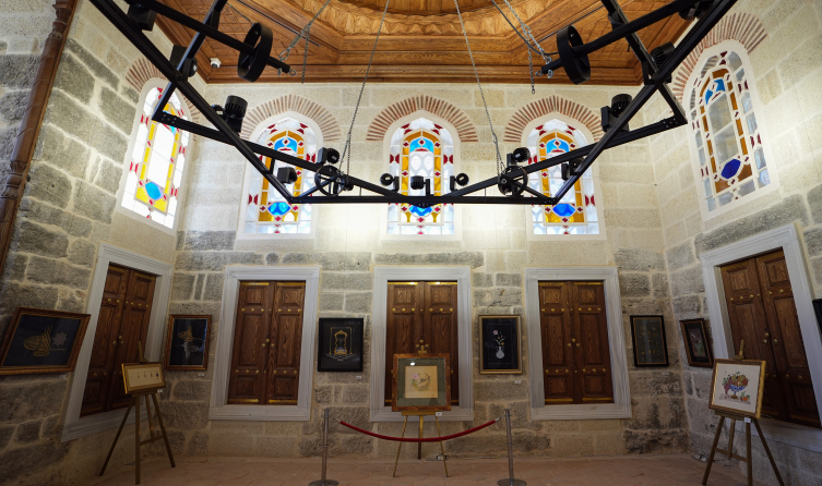 Köşkte, Mimar Sinan Güzel Sanatlar Üniversitesi Geleneksel Türk Sanatları Bölümü hocaları ve öğrencileri tarafından hazırlanan tezhip ve hat sanatı eserleri sergilendi.