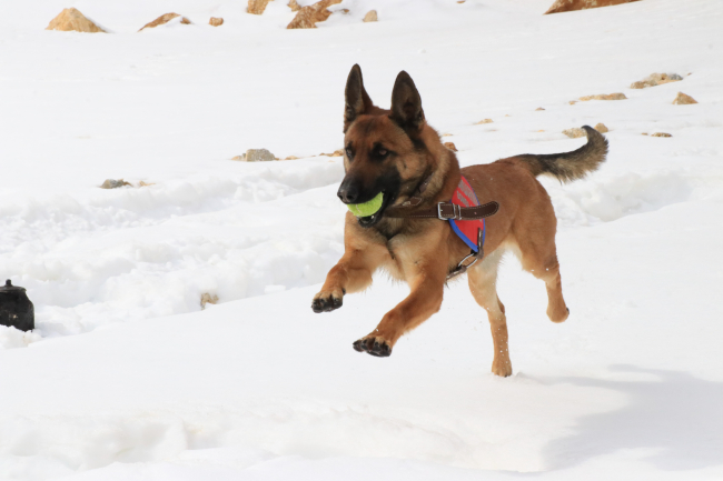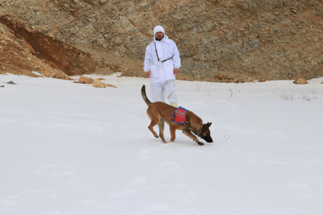 Kırsal alanda bölücü terör örgütü PKK'nın yerleştirdiği bomba, el yapımı patlayıcı, mayın ve silahların bulunmasına yönelik faaliyetlerin yanı sıra kent merkezindeki aramalarda da etkin rol alan keskin burun "Tatya", şu sıralar karla kaplı arazilerde Mehmetçikle görev yapıyor.