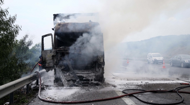 Yangın nedeniyle tır tamamen kullanılmaz hale geldi.