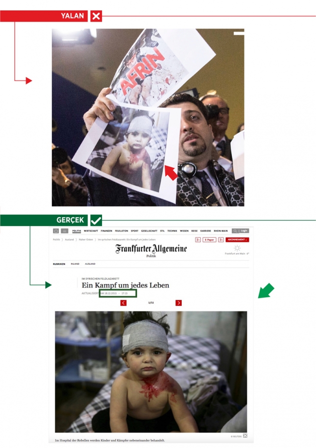 Nerweyi'nin gösterdiği, daha önce terör örgütü PYD/PKK'ya yakın sosyal medya hesapları tarafından "Afrin'de çocukları kurtarın" etiketiyle kullanılan bir diğer fotoğraf ise Suriye'deki sahra hastanelerinin birinde çekildiği ve 18 Aralık 2015 tarihli Alman Frankfurter Allgemeine gazetesinin bir haberinde kullanıldığı, Reuters ajansınca servis edilen bir fotoğraf olduğu tespit edildi.