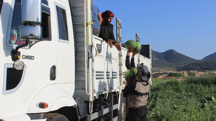Tüccarlar tarafından alınarak kamyonlara yüklenen karpuzlar, İstanbul başta olmak üzere birçok kente götürülerek manav, market ve pazarlarda tüketiciye buluşturuluyor.