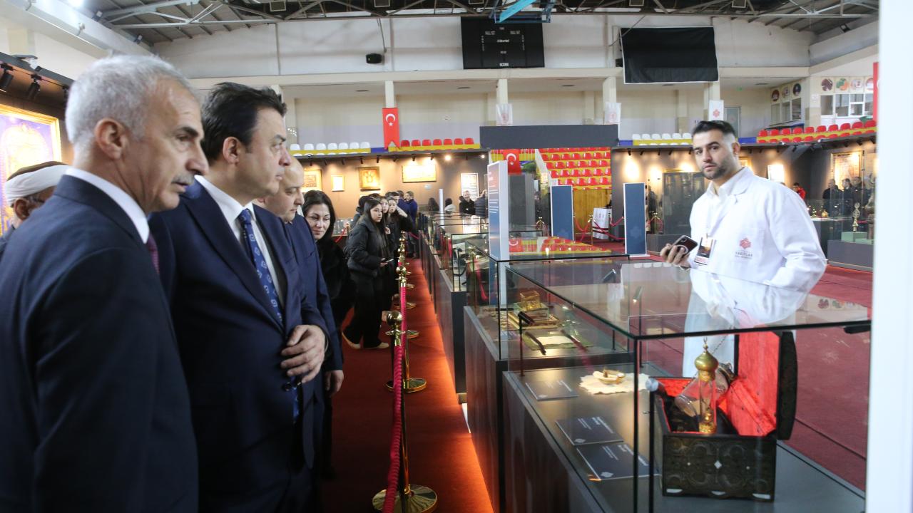 Ramazan ayının manevi iklimini kültürel mirasla buluşturmak amacıyla Hüseyin Akbaş Spor Salonu'nda düzenlenen sergide, Hazreti Muhammed'in Sakal-ı ve Saç-ı Şerifleri ile Kabe örtüsünün de arasında bulunduğu 99 vakıf eseri ve kutsal emanet yer alıyor.