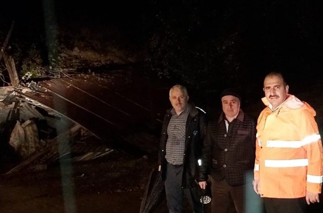 Arsin ilçesinde de aşırı yağış nedeniyle tek katlı bir ev yıkıldı.