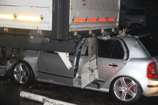 Alınan bilgiye göre, Baran Aslan (21) yönetimindeki 48 LC 711 plakalı otomobil, Halil Bey Bulvarı'nda park halindeki 14 EE 754 plakalı tıra çarptı. Kazayı görenlerin ihbarıyla olay yerine gelen itfaiye ekipleri, sürücü Aslan ve yanında yolcu olarak bulunan Gamze Aydın'ı (21) 15 dakikalık bir çalışma sonucu sıkıştıkları yerden çıkardı.