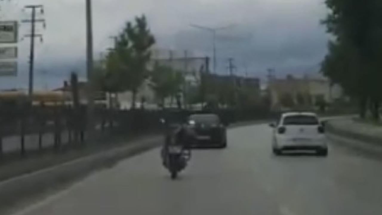 Bursa'nın İnegöl ilçesinde meydana gelen olayda, motosikletin üstüne uzanarak giden genci görenler şaşkına döndü.