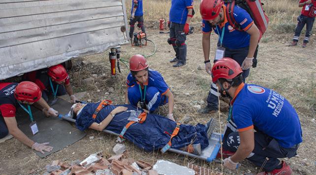 Senaryo gereği bir evin üzerine vagonların devrilmesi sonucu 1 kişinin hayatını kaybettiği, 8 kişinin yaralandığı alana ilk olarak AFAD ekipleri girdi. Muhtemel gaz kaçaklarına karşı tarama yapan ve güvenlik tedbiri alan ekip, tespit çalışmasının ardından UMKE ve 112 Acil Servis ekiplerini alana çağırdı.
