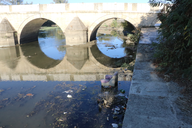 Bu bölümlerde biriken plastik ve cam atıkların yanı sıra nehre atılan koltuk dikkati çekti.