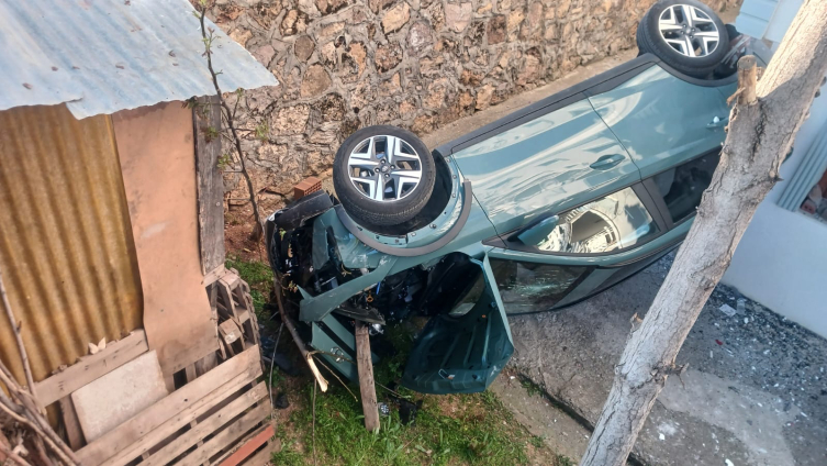 Çarpışmanın etkisiyle kontrolden çıkan P.K'nin kullandığı otomobil, yaklaşık 5 metre yükseklikteki istinat duvarından düşerek ders döndü.