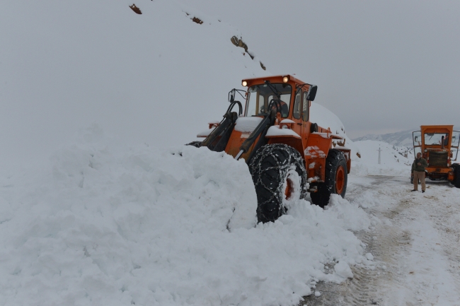 [Fotoğraf: AA]Yolları açmak için 3 iş makinesi çalışıyor