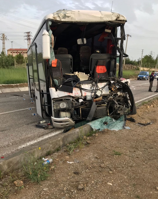 Burdur'un Bucak ilçesinden Konya Mevlana gezisine gidenleri taşıyan Volkan Temel yönetimindeki tur otobüsü, yol kenarında park halindeki TIR'a arkadan çarptı.