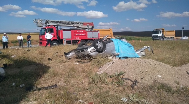 Çorum'un Alaca ilçesinde tur otobüsüyle otomobilin çarpışması sonucu ilk belirlemelere göre 3 kişi yaşamını yitirdi, çok sayıda kişi yaralandı.