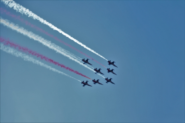 Gökyüzünde çeşitli hareketlerle izleyicilerden beğeni alan gösteri yaklaşık 20 dakika sürdü. Gösterinin sonunda ekipler tarafından gökyüzüne kalp figürü çizildi.