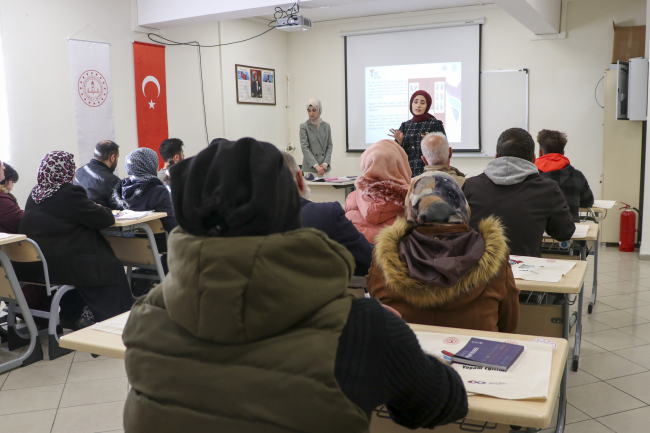 Tercümanların da eşliğinde verilen kurslarda, ortak yaşam alanları ile hak ve yükümlülükler konusunda dikkat edilecek konular anlatılıyor.