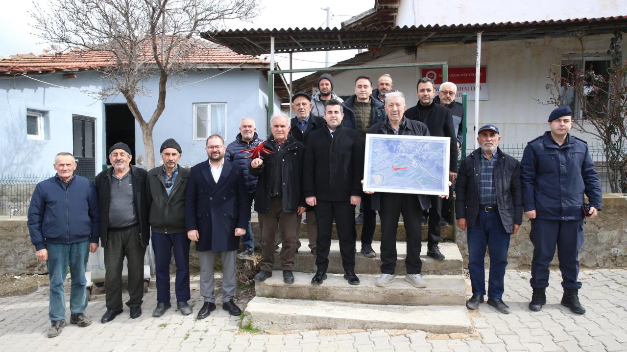 Mahalleye ziyarette bulunan TUSAŞ ekibi, Dümrek Mahallesi Muhtarı İbrahim Erbek ve vatandaşlarla bir araya geldi.