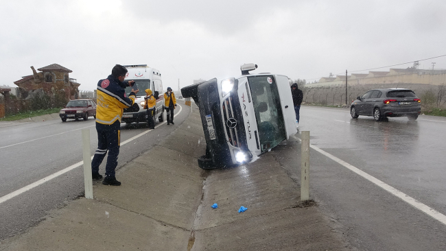 Sivaslı istikametinden kent merkezine doğru seyreden D.A'nın kullandığı minibüs, Cezaevi Kavşağı'nda refüjdeki su kanalına devrildi.