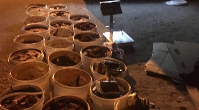 Ekiplerin araçta yaptığı aramada çok sayıda kovadaki salçaların içerisine gizlenmiş 35 kilogram ağırlığında 210 bin uyuşturucu hap ele geçirdi.