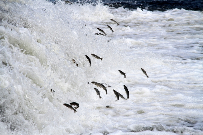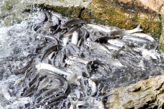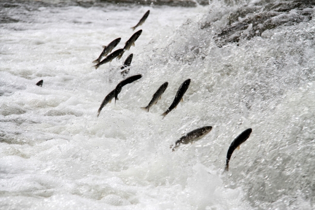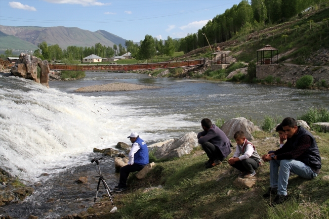 Balık göçünün ilk başladığı Muradiye ilçesindeki Bendimahi Çayı'na gelen ziyaretçiler, suyun akışının tersine yüzen ve önlerine çıkan engelleri zıplayarak aşmaya çalışan balıkların eşsiz yolculuğuna tanık oluyor.