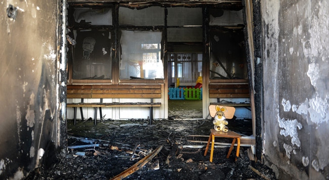 Van'ın İpekyolu ilçesinde, PKK'lı teröristlerce molotofkokteyli atılarak yakılan anaokulu kullanılamaz hale geldi.