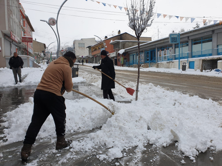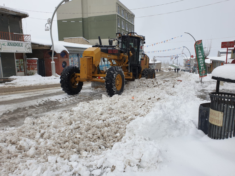 Kar kalınlığının merkezde 30, yüksek kesimlerde ise 50 santimetreye ulaştığı ilçede belediye ekipleri kar temizliği yaptı.