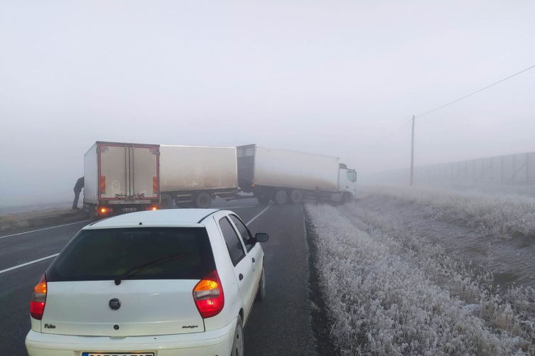 Yoğun sis ve buzlanmanın etkili olduğu kara yolunun Van-Erciş istikametinde sabah saatlerinde zincirleme trafik kazası meydana geldi.