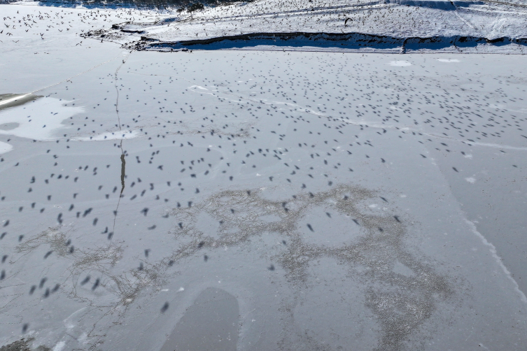 Dondurucu soğuklar nedeniyle Van-Özalp karayolunda sulama amaçlı kullanılan Sıhke Gölü'nün yüzeyi tamamen buz tuttu.