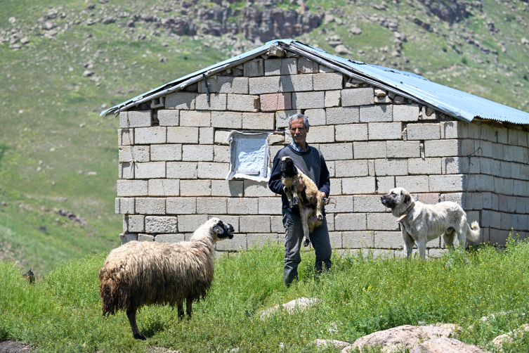 Açıkyol Mahallesi'nde yaşayan 56 yaşındaki 6 çocuk babası Vanlı, yaklaşık 600 koyundan oluşan sürüsüne kışın yayladaki ahırda, diğer dönemlerde de yaylada bakıyor.