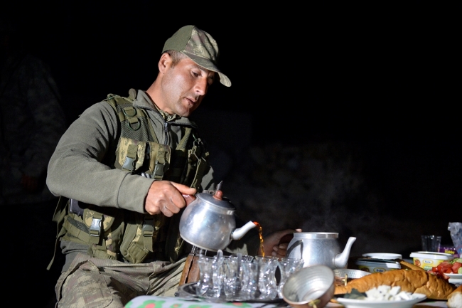 Ramazan ayının ilk sahurunu görev arkadaşlarıyla birlikte yaptıklarını kaydeden Çakas, "Yemeğimizi yedikten sonra görevimizin başına geçeceğiz, nöbetteki arkadaşlarımız da gelip sahur yapacak. Karakol komutanımız, kaymakamımız, valimiz sağ olsun hep yanımızdalar. Allah milletimize devletimize zeval vermesin. Her zaman görevimizin başında olacağız" dedi.