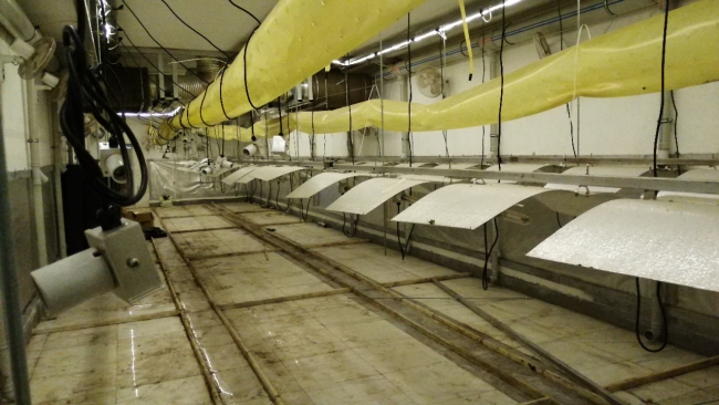 Çevresinde çok sayıda köpek bulunan villanın zeminindeki tahta kapağı kaldıran polis ekipleri, bodrum katta odalar olduğunu tespit etti. Uzaktan kumandalı asansör ile bodrum kata inen polisler, uyuşturucu imalathanesiyle karşılaştı.