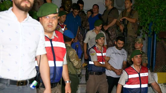 Gözaltına alınan darbeci askerler, Marmaris'teki Çetibeli Karakolu'na götürüldü.