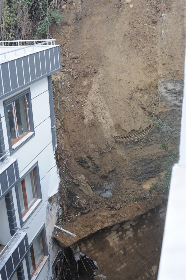 Toprak yığını altında kalan binalardan birinin inşaat halinde olduğu belirtilirken, duvarın çökmesiyle birlikte toprağın 2 ve 3'üncü kata kadar girdiği görüldü.
