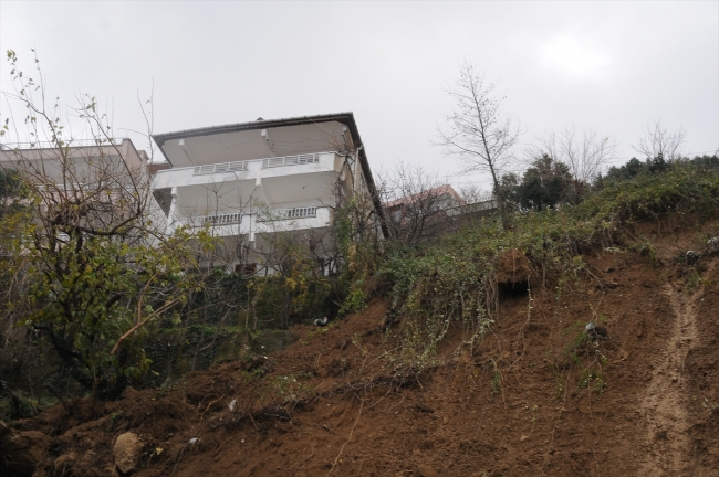 Yalova Çınarcık Liman Mahallesi'nde, 25-30 yıllık olduğu belirtilen istinat duvarının yıkılmasıyla toprak yığını altında kalan 2 binada incelemeler sürüyor.