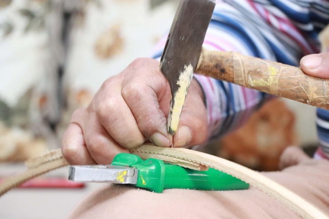 Bursa'nın Mustafakemalpaşa ilçesinden bükülmüş olarak gelen kasnakları yapacağı davulun ebatlarına uygun olarak kesip, istenilen renge boyayarak işe başladığını belirten Kayalar, "Ardından ince çıtalardan hazır olarak getirttiğimiz çemberlere derileri raptiyeliyorum. Ardından bu çemberleri karşılıklı olarak kasnağa ipler yardımıyla sıkıca bağlayarak, gerdiriyorum. Ardından da son aşama olan davula omuz askısı takıp, hazır hale getiriyorum. Davul tokmakları da bize zaten hazır olarak geliyor. Çıprık dediğimiz davul çalmada kullanılan ince sopayı ise zeytin ağacı dallarından yapıyoruz" dedi.