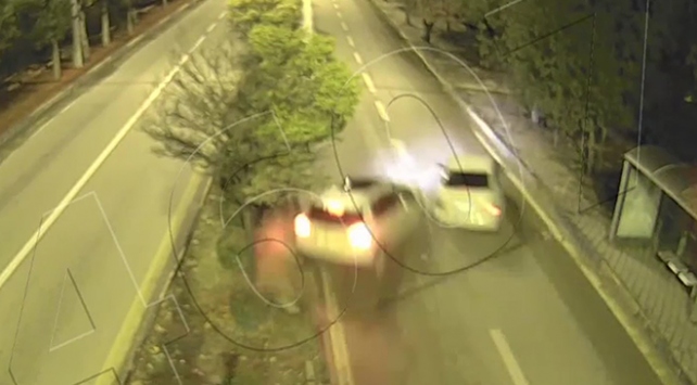 Kontrolden çıkan iki otomobil de çarpışmanın etkisiyle kaldırıma savruldu. O anlar ise Kent Güvenlik Yönetim Sistemi (KGYS) kamerası tarafından kaydedildi.