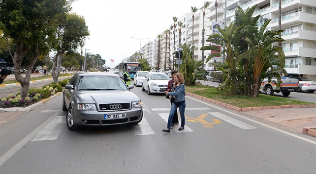 Antalya Emniyet Müdürlüğünce hazırlanan ve Avrupa Birliğince desteklenen "Antalya'da Yaya Önceliğini ve Güvenliğini Sağlamak için Yaşam Boyu Öğrenme Projesi" kapsamında pilot Konyaaltı Caddesi'nin 2 kilometrelik bölümünde, trafik sinyalizasyonu bulunmayan 4 yaya geçidindeki yaya önceliği uygulaması devam ediyor.