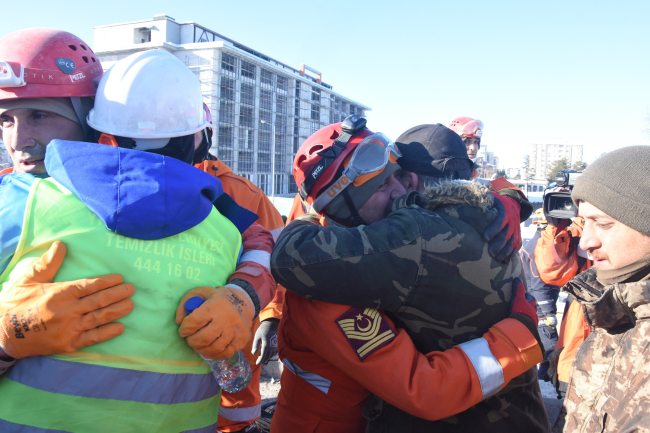Arama kurtarma çalışmalarında görev alan ve 20 saat boyunca aralıksız çalışan ekipler, Meral Nakır'ı çıkardıktan sonra birbirlerine sarılarak gözyaşı döktü. Arama kurtarma çalışmalarında, asker, polis, sağlık ekipleri, AFAD, itfaiye ve sağlık ekipleri görev yaptı.