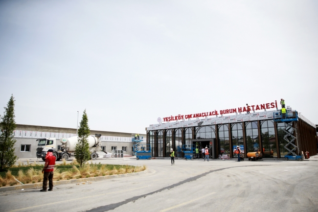 Bu kapsamda, 9 Nisan'da temeli atılan ve yapımı süren Atatürk Havalimanı yerleşkesindeki hastane binasına, "Yeşilköy Çok Amaçlı Acil Durum Hastanesi" yazılı tabela asıldı. Çevre uyarı tabelalarının hastane yerleşkesine konulduğu görüldü.
