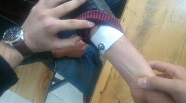 Şahısların, bluetooth cihazını kollarındaki serum kelebeği setinin altına gizlediği tespit edildi. AA