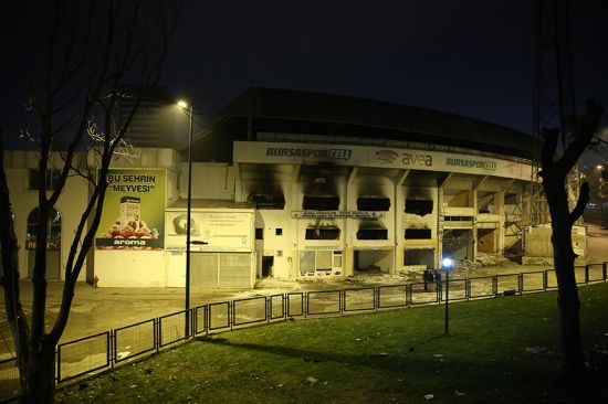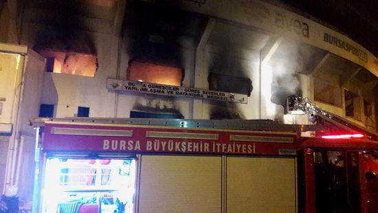 Alınan bilgiye göre, merkez Osmangazi ilçesinde bulunan ve yıkımı devam eden stadın, güney kale arkası tribünlerinde henüz belirlenemeyen sebepten dolayı yangın çıktı.