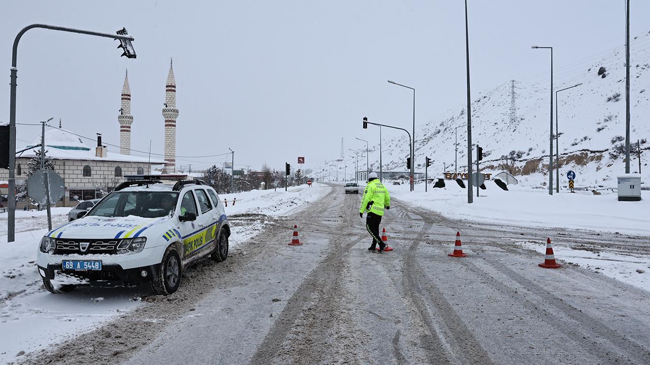 Bayburt Emniyet Müdürlüğü bölge trafik ekipleri, güzergahtaki 21 Şubat Küçük Sanayi Sitesi ile Aşağı Kop köyü mevkiinde araçların geçişine izin vermiyor.