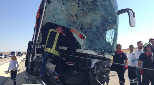 Alınan bilgiye göre, Mustafa Remzi Kuşeli yönetimindeki otobüsü, Kulu-Konya karayolunun 25. kilometresinde, Bayram Gür'ün kullandığı iş makinesine çarptı.