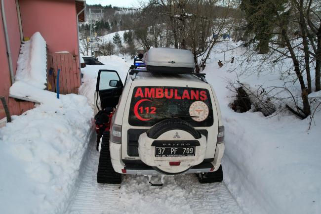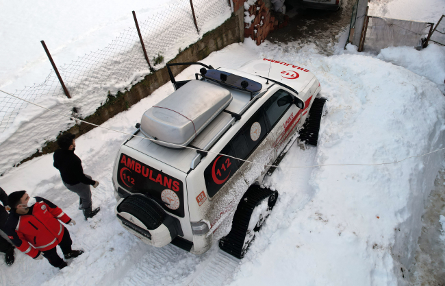 Köy yolundaki kar kalınlığının 80 santimetreyi bulması nedeniyle zor yolları paletli ambulansla aşan sağlık ekipleri, yaklaşık 1,5 saat süren yolculuk sonunda hastaya ulaştı.