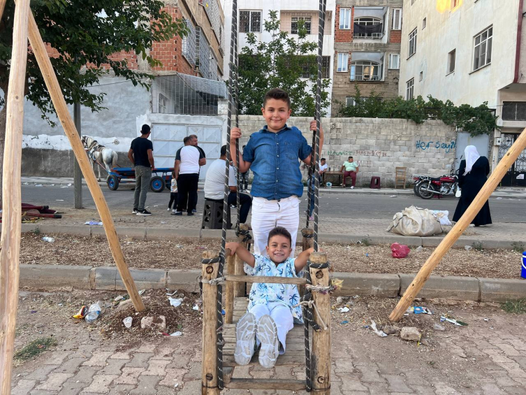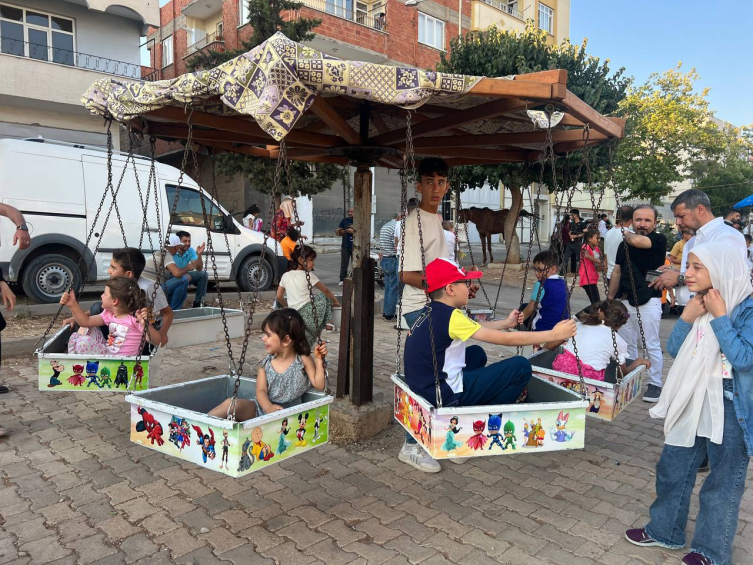 Kilis Belediyesi'ne ait Müslümanbey Mahallesindeki boş alan, bayramlarda çocukların eğlenebileceği mekan haline dönüşüyor.