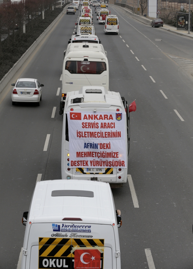 Ankara'da servis aracı şoförleri, Türk Silahlı Kuvvetleri (TSK) tarafından Afrin bölgesinde yürütülen Zeytin Dalı Harekatı'na destek amacıyla konvoy düzenledi.