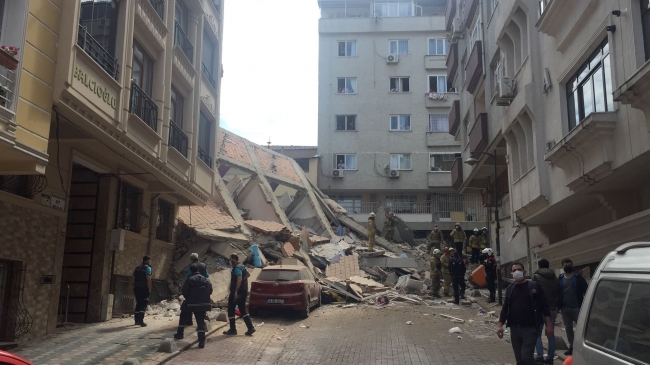 Zeytinburnu Sümer Mahallesi 27/3 numaralı sokakta, daha önce yıkılma riski nedeniyle boşaltılan 5 katlı bina saat 10.30'da çöktü.