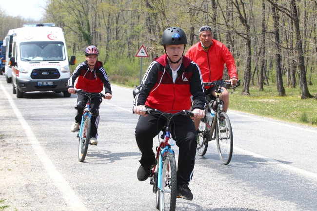 Daha sonra spor ayakkabıları, kask ve eldivenleri öğretmenleri tarafından giydirilen öğrenciler, Kırklareli Milli Eğitim Müdürü Murat Aşım, Müdür Yardımcısı Ahmet Uzun ile Şehit Mutlucan Kılıç Özel Eğitim Uygulama Merkezi Müdürü Şahin Değer'in de katılımıyla pedal çevirmeye başladı.