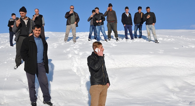 Muş'un Korkut ilçesi Değirmitaş köyü Kaşdibi mezrasında vatandaşlar, GSM hatlarının çekmemesi nedeniyle cep telefonuyla konuşmak için dondurucu soğuğa rağmen tepelere çıkmak zorunda kalıyor.