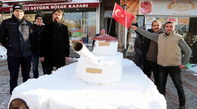Edirne'de iki esnaf, Fetullahçı Terör Örgütü'nün (FETÖ) 15 Temmuz'daki hain darbe girişiminde şehit olanların anısına kardan tank yaptı.