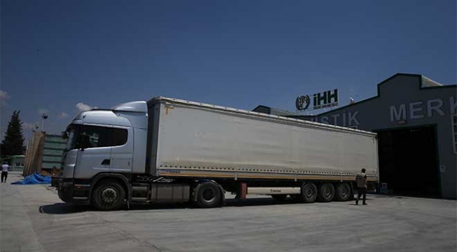 İHH İnsani Yardım Vakfı tarafından Suriye'ye gıda ve hijyen malzemelerinin bulunduğu 35 yardım tırı gönderildi.